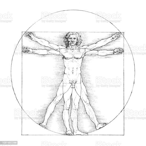 The famous drawing “Vitruvian Man” (Uomo vitruviano) by Leonardo da Vinci.